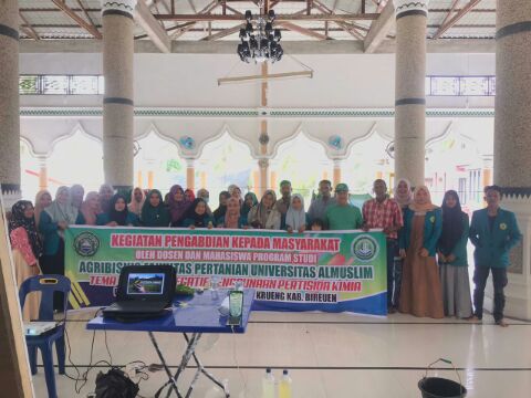 Sejumlah mahasiswa dan dosen dari prodi Agribisnis Fakultas Pertanian Universitas Almuslim Peusangan melakukan sosialisasi dampak penggunaan peptisida kimia terhadap lingkungan kepada masyarakat di desa Kubu kecamatan Peusangan Siblah Krueng, Sabtu (7/12/2019).