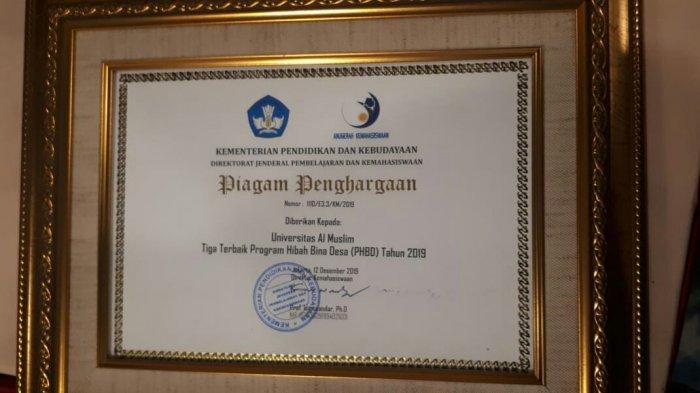 Universitas Almuslim (Umuslim) Peusangan Bireuen melalui tim Program Hibah Dana Bina Desa (PHBD) Himpunan Program Studi Pendidikan Guru Sekolah Dasar (Hima-PGSD) meraih nilai terbaik tiga sebagai pelaksana kegiatan PHBD tahun 2019.