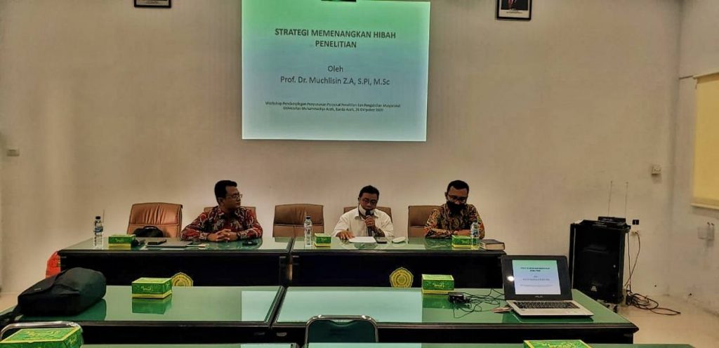 BANDA ACEH – Universitas Muhammadiyah Aceh melalui Lembaga Penelitian, Penerbitan, Pengabdian dan Pengembangan Masyarakat (LP4M) menyelenggrakan acara pelatihan dan bimbingan teknis penulisan proposal Kementrian Riset dan Teknologi (Ristek)/Badan Riset dan Inovasi Nasional (BRIN).