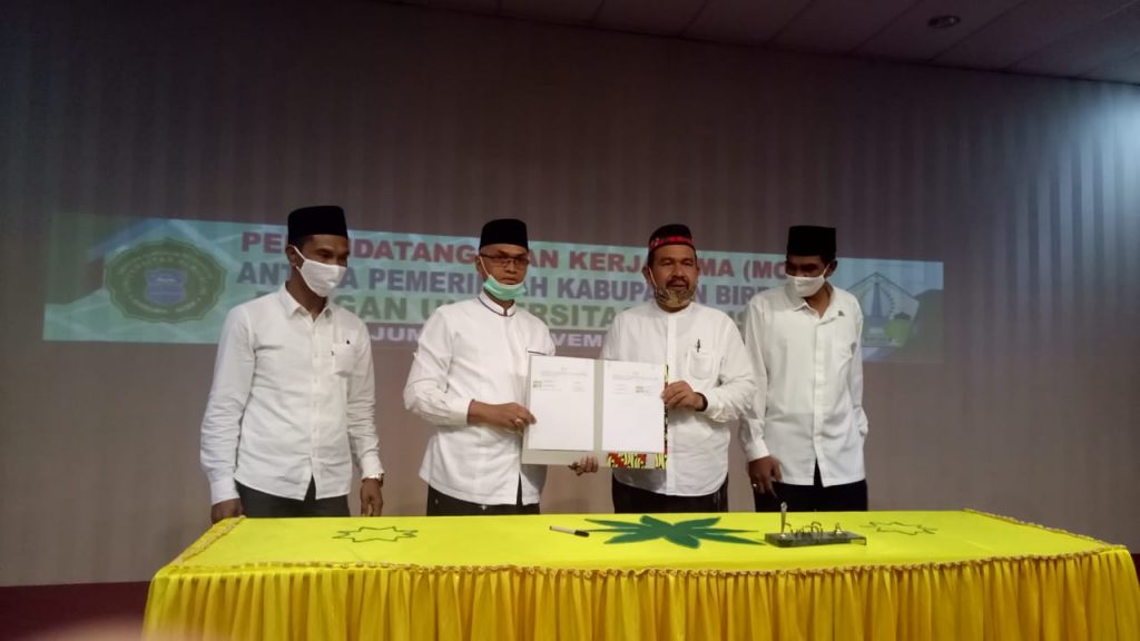 Bireuen, Teroping Barat – Pemerintah kabupaten Bireuen melaKuakn penandatanganan naskah kerjasama (MoU) dengan universitas almuslim (Umuslim) Peusangan.