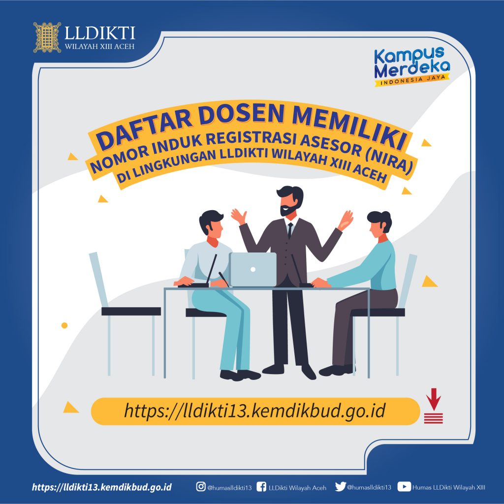 Sehubungan dengan pelaporan Beban Kerja Dosen (BKD) Tahun 2021 bagi dosen bersertifikasi di lingkungan LLDikti Wilayah XIII Aceh, bersama ini kami sampaikan daftar nama-nama asesor BKD di Lingkungan LLDikti Wilayah XIII Aceh yang telah lulus tahun 2019.