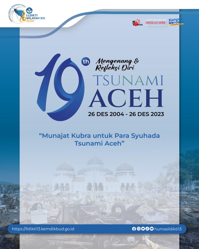 Musibah gempa dan tsunami Aceh yang terjadi 19 tahun silam menjadi catatan sejarah yang akan selalu dikenang. Mari sejenak mengenang sekaligus mengirim do’a terbaik kita untuk para syuhada tsunami Aceh!