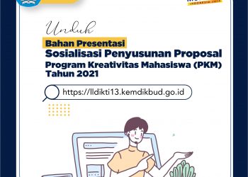 Unduh bahan Presentasi Sosialisasi Penyusunan Proposal PKM Tahun 2021 pada tautan di bawah ini: http://bit.ly/MateriSosialisasiPKM2021-LLDIKTI13