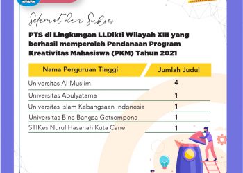 Pengumuman Program Kreativitas Mahasiswa (PKM) sudah bisa diakses melalui laman Simbelmawa, sebanyak Delapan Judul proposal dari Lima PTS di Aceh…