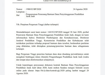 Menindaklanjuti surat direktur pembelajaran dan kemahasiswaan direktorat jenderal pendidikan tinggi, dengan ini maka dinformasikan Program Studi Menerapkan Kerja Sama Kurikulum…