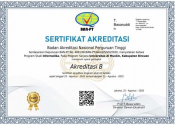 Teknik Informatika Umuslim Sudah Terakreditasi B BIREUEN, TEROPONG BARAT | Prodi Informatika fakultas ilmu komputer (Fikom) universitas almuslim (umuslim) berhasil…