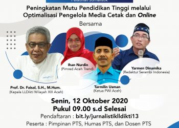Insan Humas di Lingkungan LLDikti WIlayah XIII Aceh dan para dosen yuk ikut kegiatan pelatihan jurnalistik yang akan dilaksankan hari…